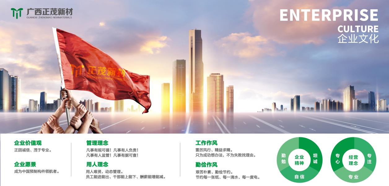 正茂集團是一家專業從事高端混凝土研制的高新技術企業,創建于2007年,自主研發混凝土制品30余種,擁有國家級專利20余項,經營范圍以新型環保建筑復合材料及裝配式建筑預制構件為主體。2019年7月,正茂集團正式簽約入駐馬山縣蘇博工業園區,投資建設以高鐵、地鐵、市政、電力、水利及裝配式建筑構件等為主的生產線項目。...